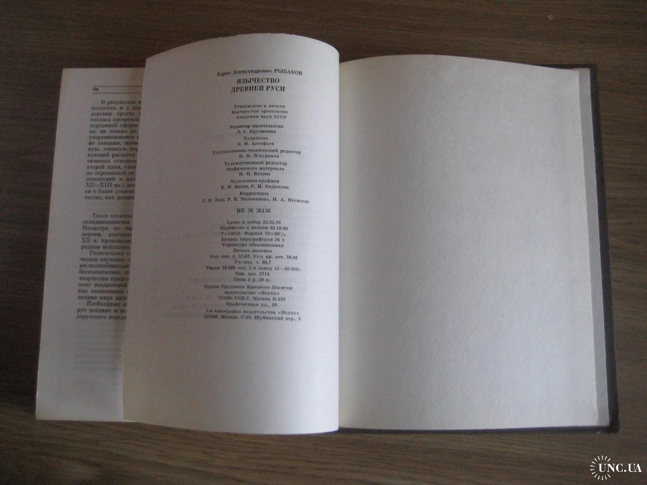 №497. Автор монографии - Б.А.Рыбаков. Книга ''Язычество древней Руси'' изд-во Наука Москва 1987. Стан прошу оцінювати по фото (на деяких сторінках є помітки олівцем - див. фото №8). Сторінок - 782. Параметри: 22х17х3,7см. Тираж - 95т. Пересилка - Нова пошта, Укрпошта. Для киян можливість зустрічі та перегляду (неділя - метро Нивки). В РФ та Білорусію не відправляю!