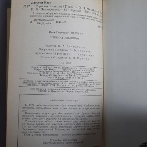 У повісті «Сержант міліції» описуються героїчні будні радянської міліції, що охороняє працю та спокій радянських громадян.