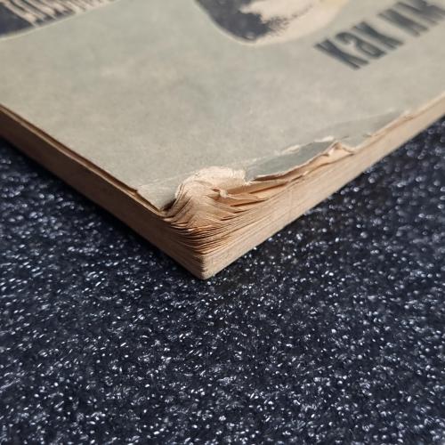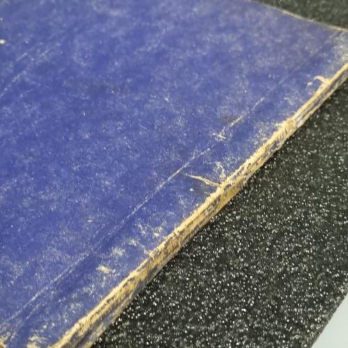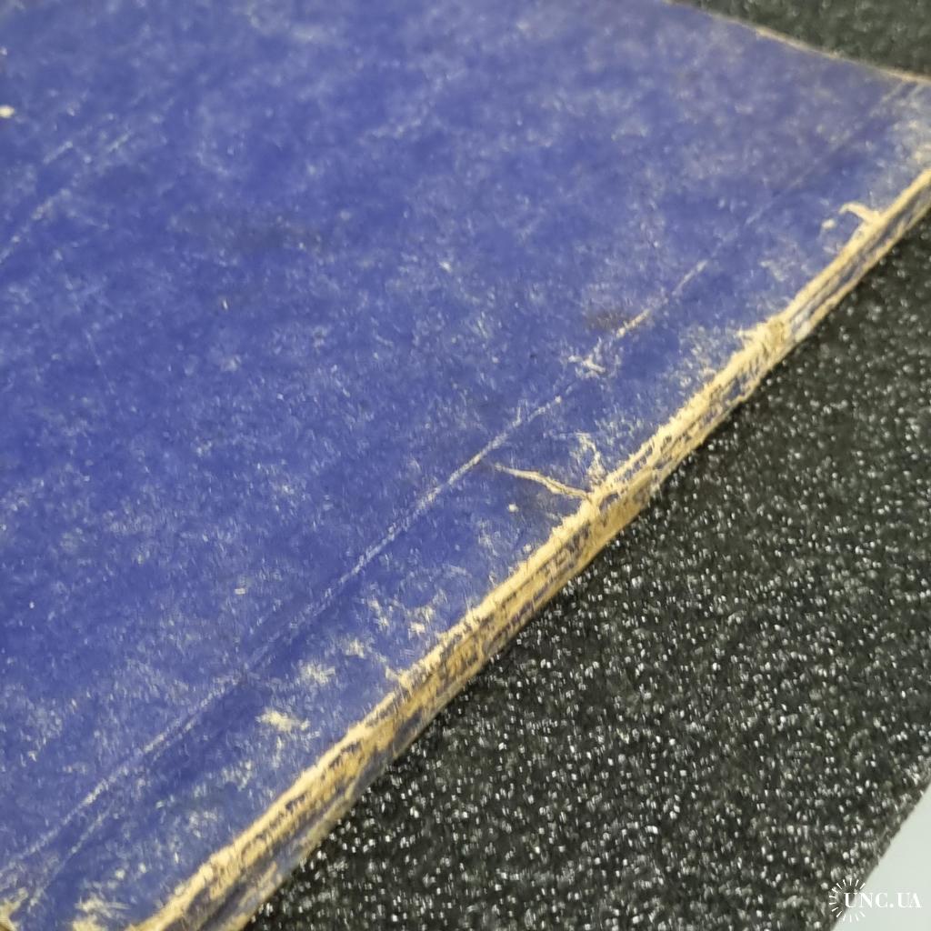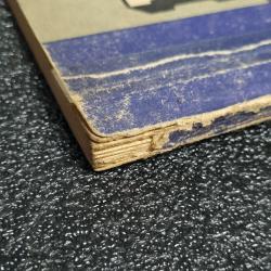 - Потертість і зношеність: Обкладинка і корінець сильно протерті, особливо по краях. На синій частині обкладинки помітні світлі смуги, що свідчать про вицвітання або зношення матеріалу.