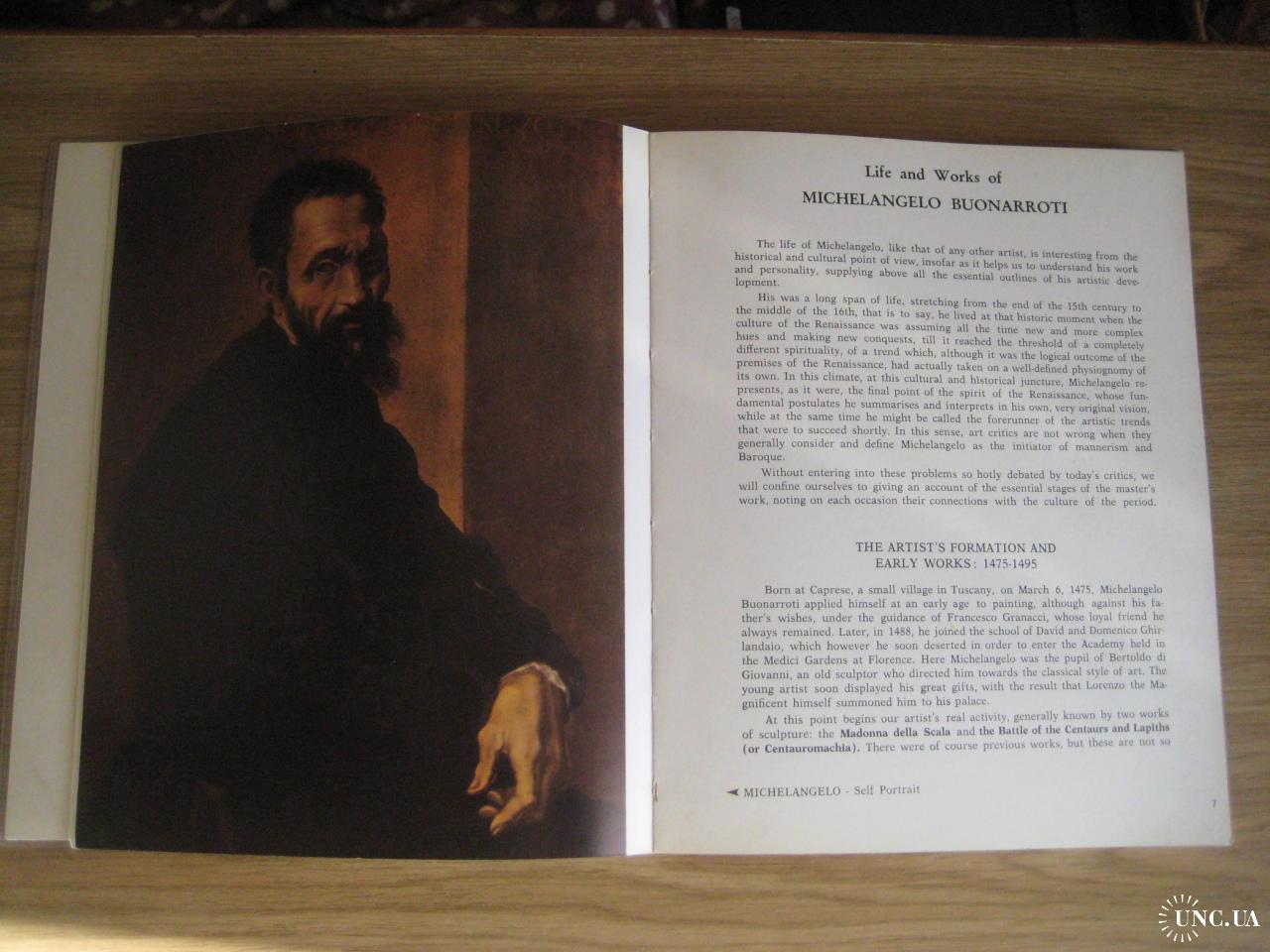 №494. Автор Лоретта Сантіні. Книга Мікеланджело Буонарроті - художник скульптор архітектор, Terni Italia 1972. Папір крейдяний. Книга в суперобкладинці. Сторінок - 119. Параметри: 24х19,5х1,5см. Пересилка - Нова пошта, Укрпошта. Для киян можливість зустрічі та перегляду (неділя - метро Нивки). В РФ та Білорусію не відправляю!