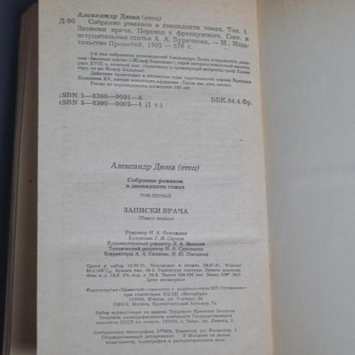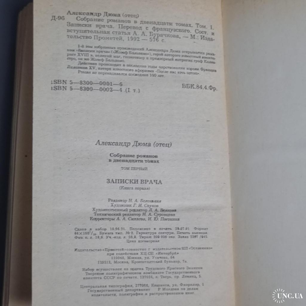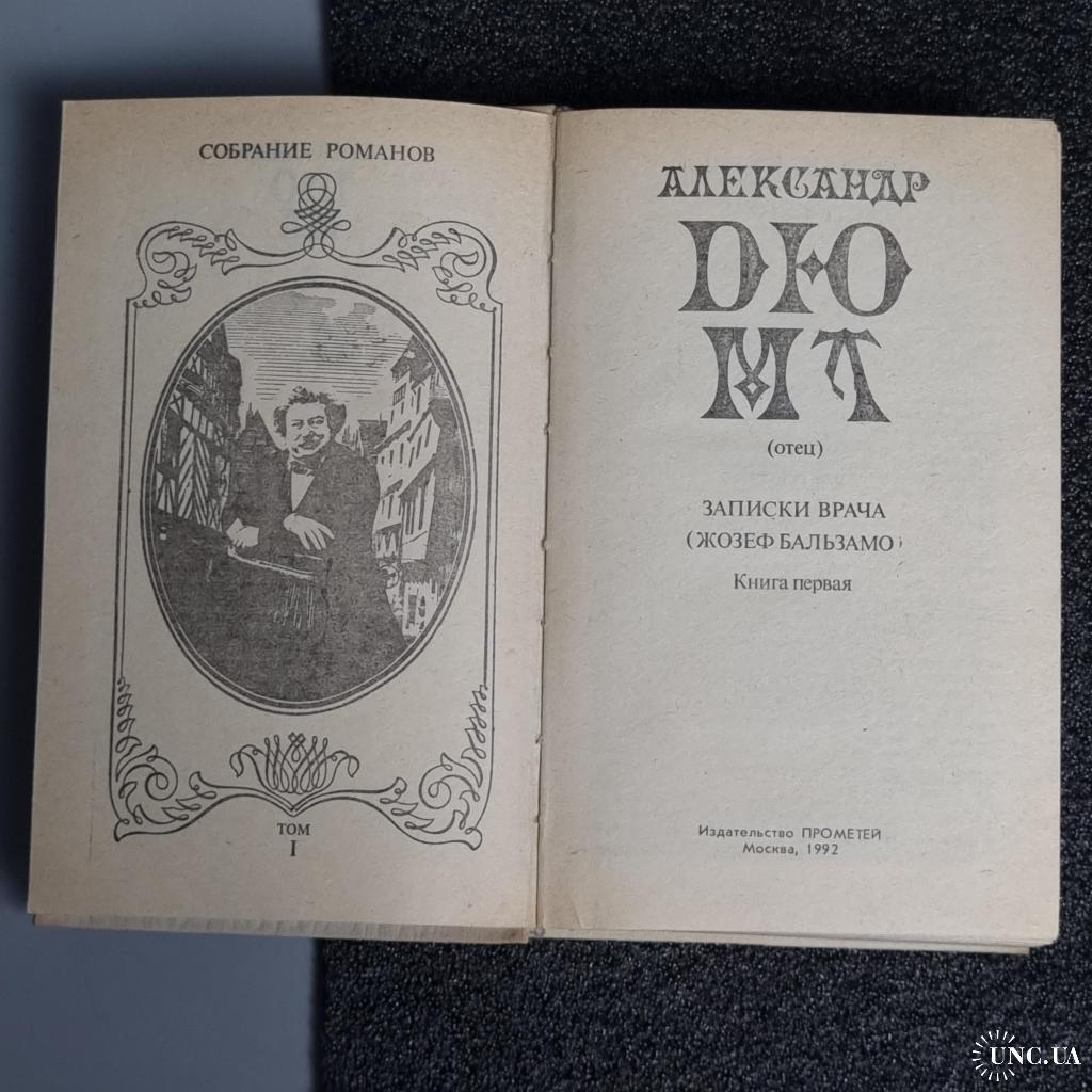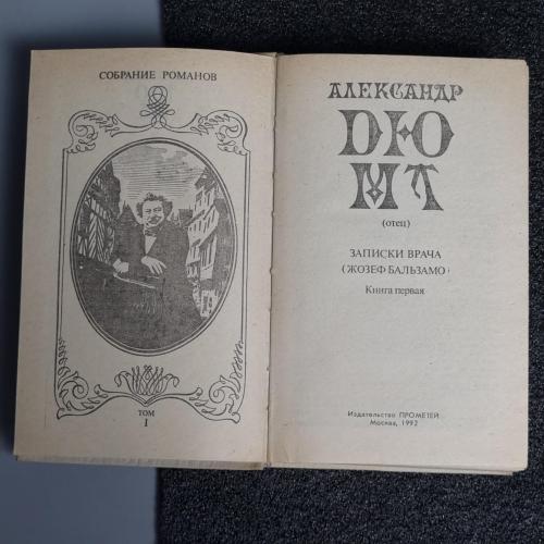 1-й том зібрання творів Олександра Дюма відкривається романом «Записки лікаря» («Жозеф Бальзамо»), герой якого, відомий авантюрист XVIII ст., великий маг, гіпнотизер і прижиттєвий ворог графа Каліостро, він же Жозеф Бальзамо.