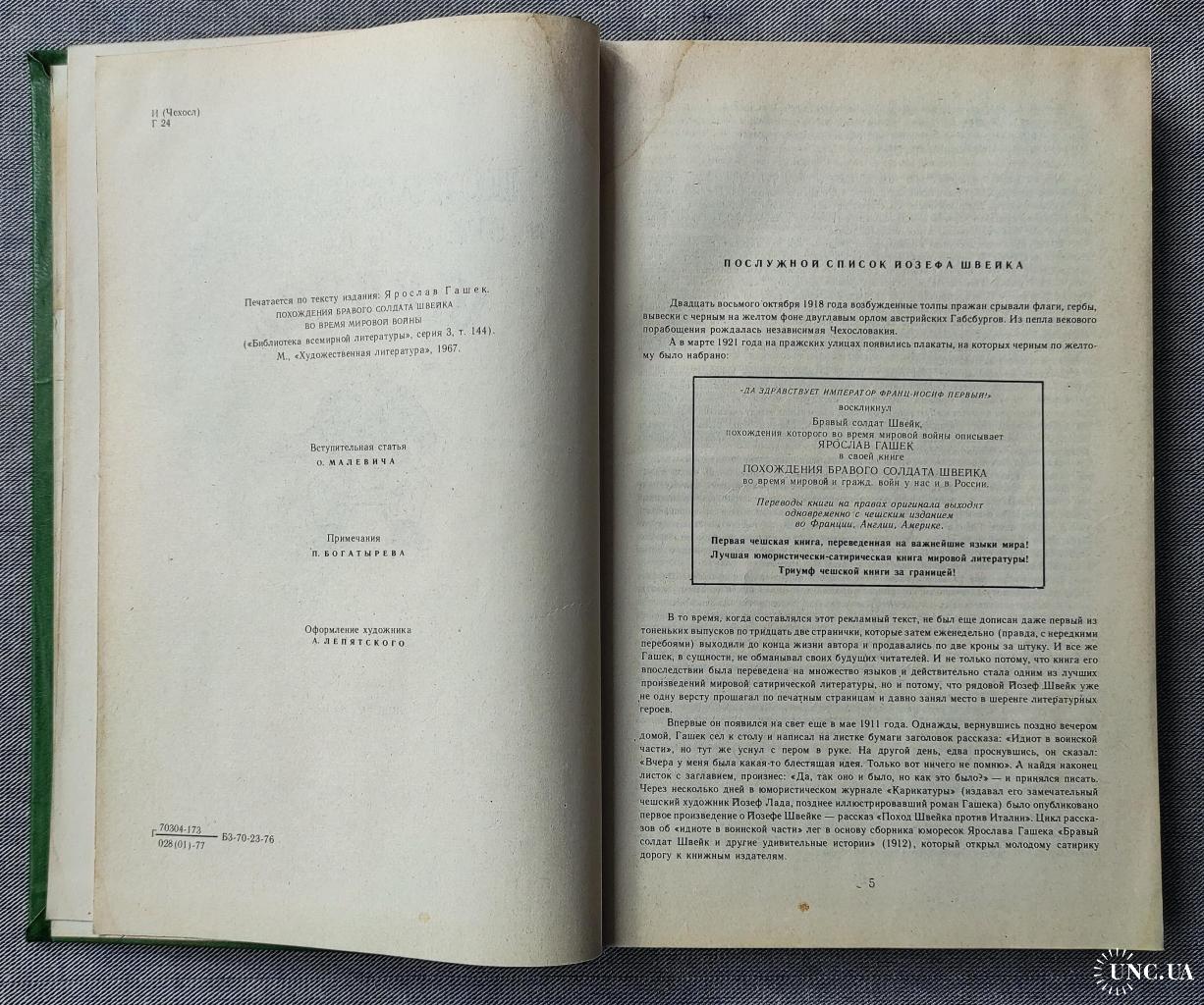 Книга "Похождения бравого солдата Швейка", Я. Гашек. 1976г