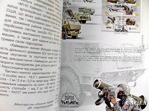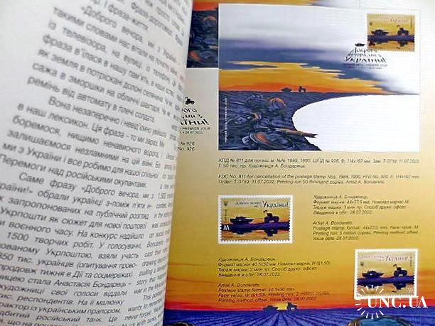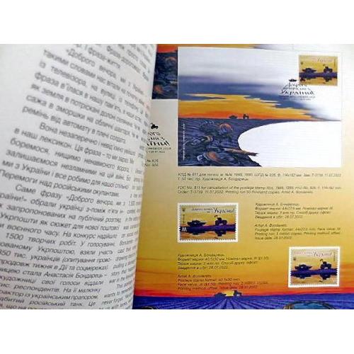 Річна книга «Поштові марки України 2022» (без марок) представлена у варіанті з м'якою обкладинкою. Як і у традиційному виданні, кожен випуск 2022 р. супроводжується зображенням марок, конвертів і штемпелів "Перший день", авторським текстом з технічними характеристиками двома мовами — українською та англійська.
