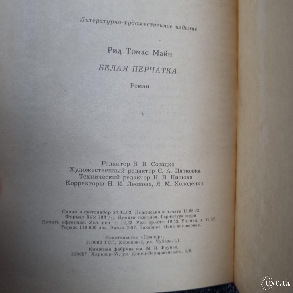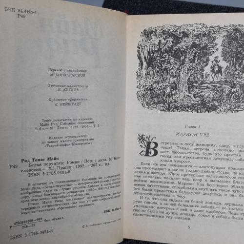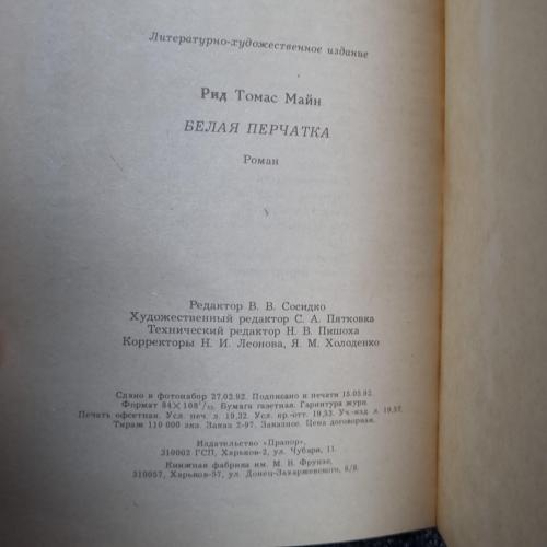 Книга Роман «Біла рукавичка»(Майн Рід) 1992
