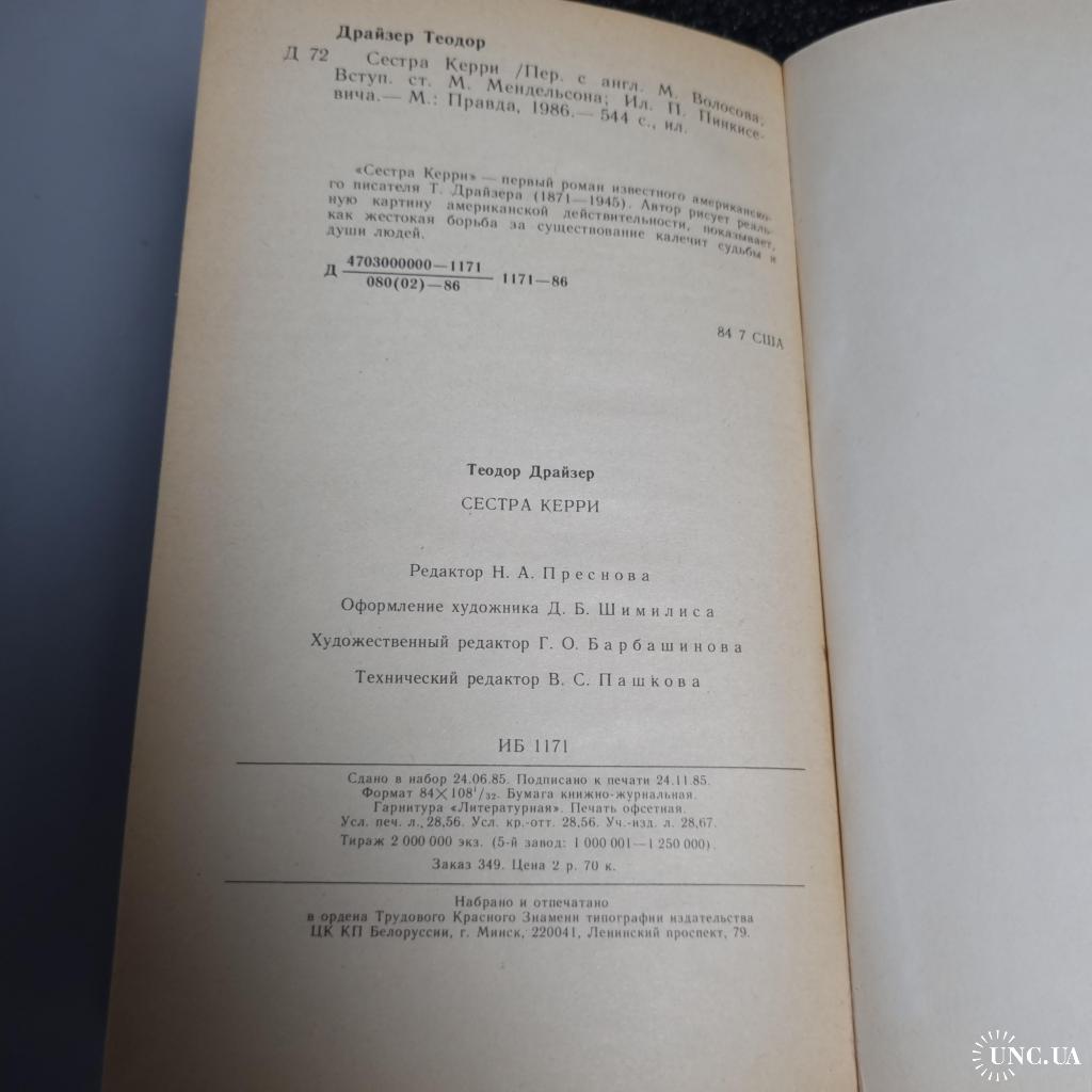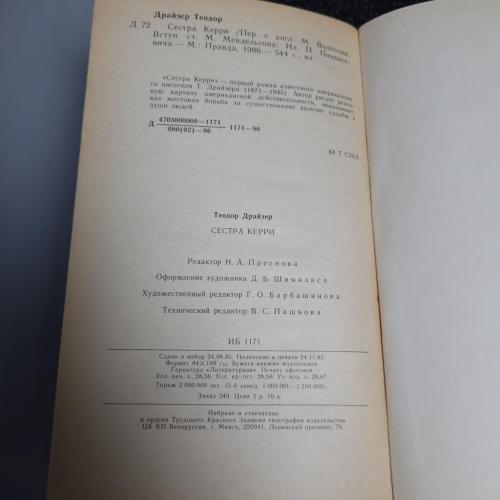 Книга Т. Драйзер "Сестра Керрі" 1986