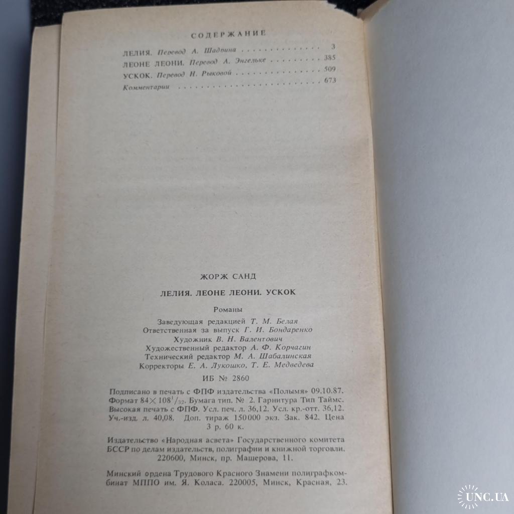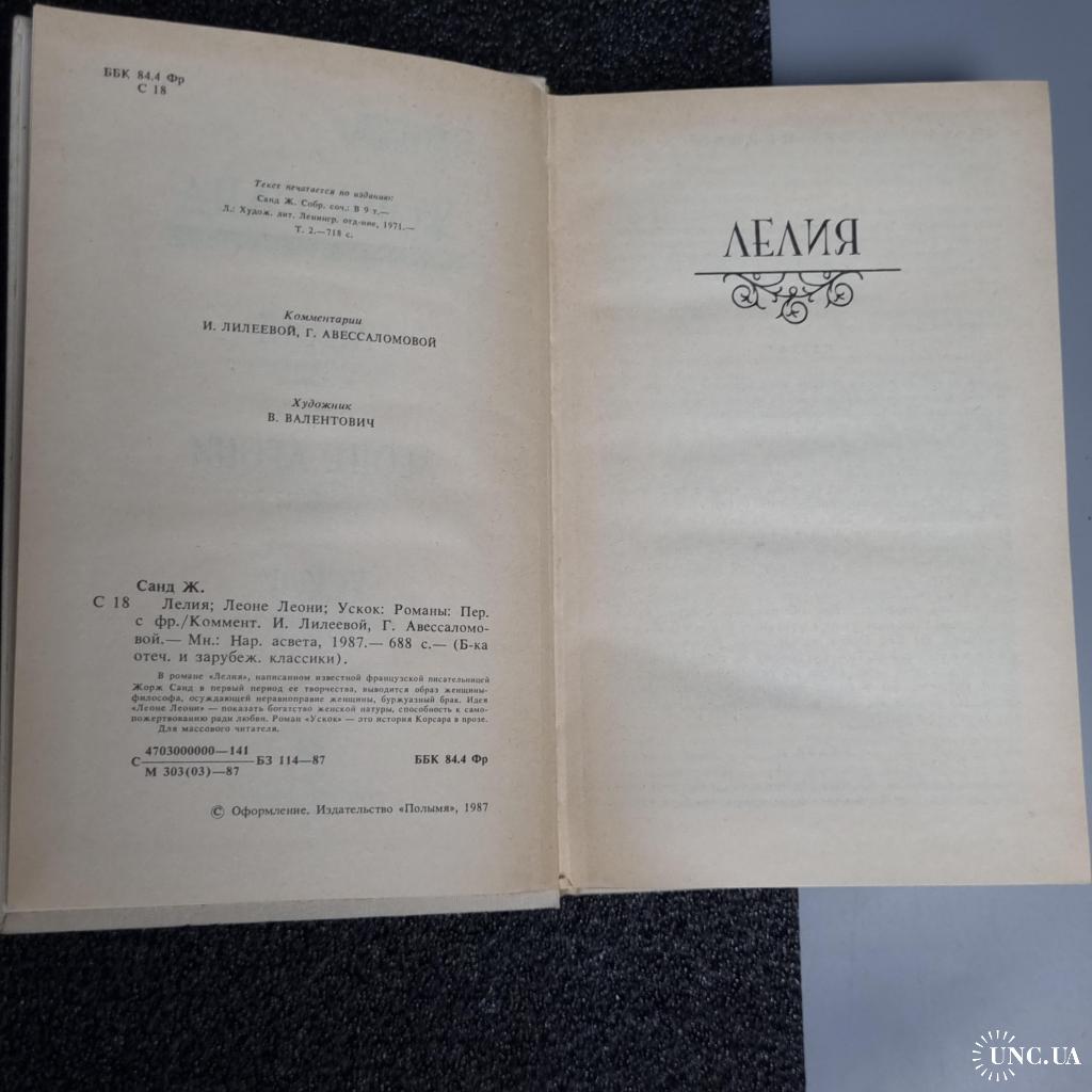 Книга Жорж Санд "Лелія. Леоні Леоні. Ускок" 1987