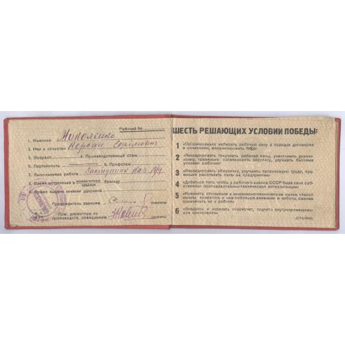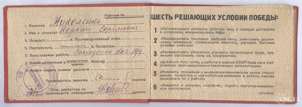 Оттиск штемпеля "Всесоюзный центральный совет профессиональных союзов Фастовский леспромхоз".