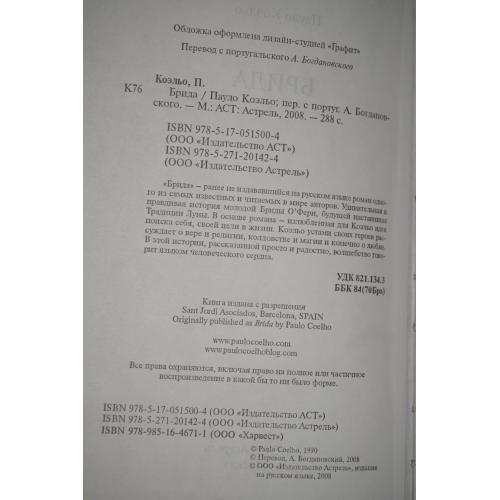 Перевод с португальского А. Богдановского. М. АСТ 2008г. 288 с. Палiтурка / переплет: твердый, обычный формат.