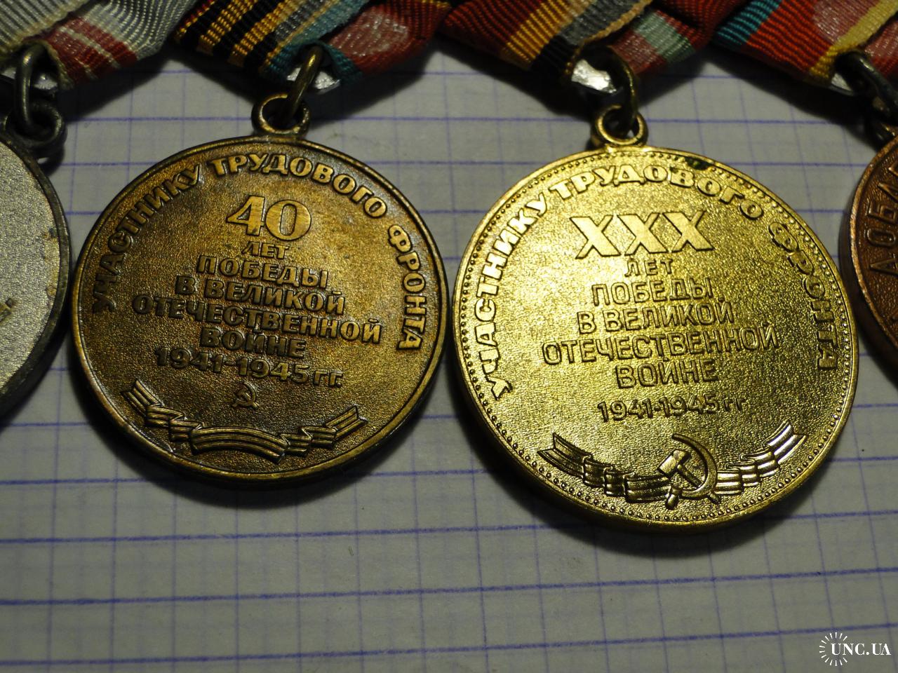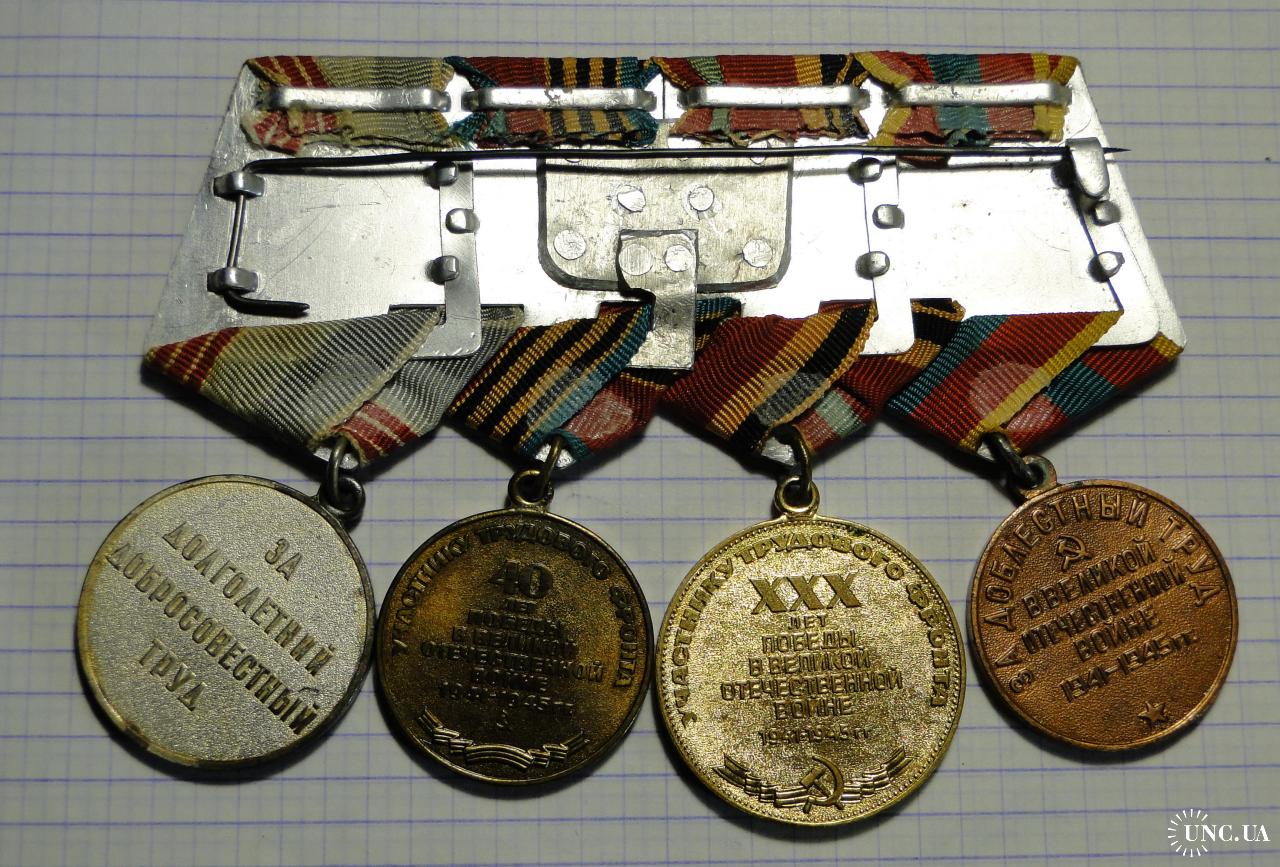 1941-1960Колодка с четырьмя советскими наградами,