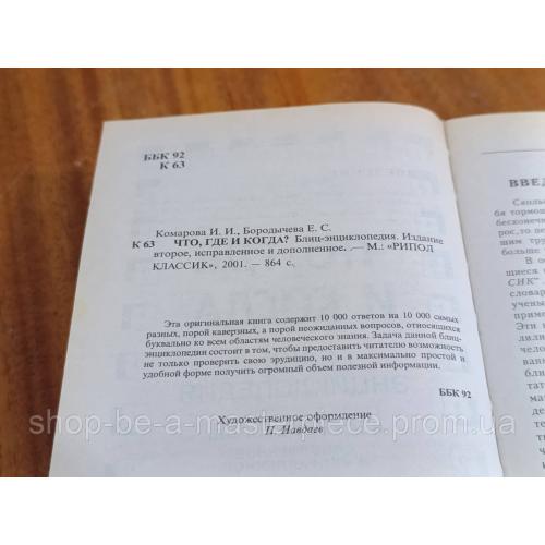 Комарова И. И., Бородычева Е. С. ЧТО, ГДЕ И КОГДА? Блиц-энциклопедия. 2001. - 864 с.