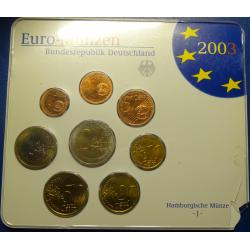 Complete euro-set of Germany 2003 J (Hamburg mint) UNC / Повний комплект обігових євромонет Німеччини 2003 J (монетний двір Гамбург) UNC