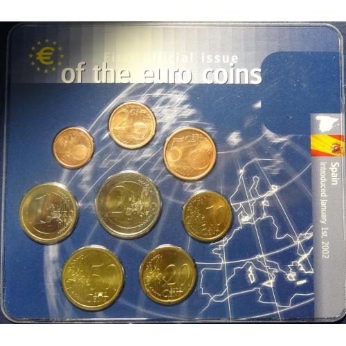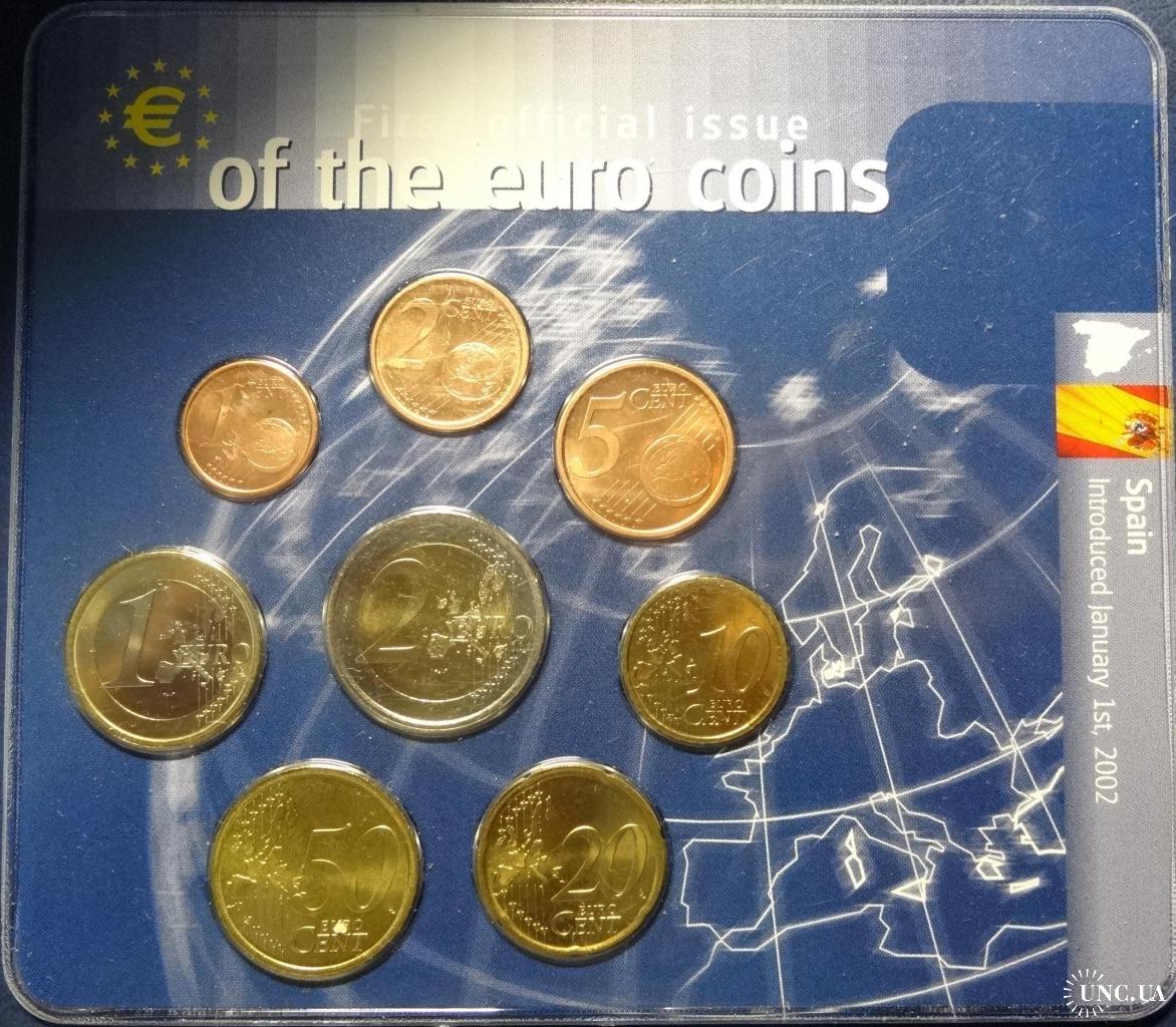 Complete euro-set of Spain 2001 UNC (King Juan Carlos I) / Повний комплект євромонет Іспанії 2001 UNC (Король Хуан Карлос I)