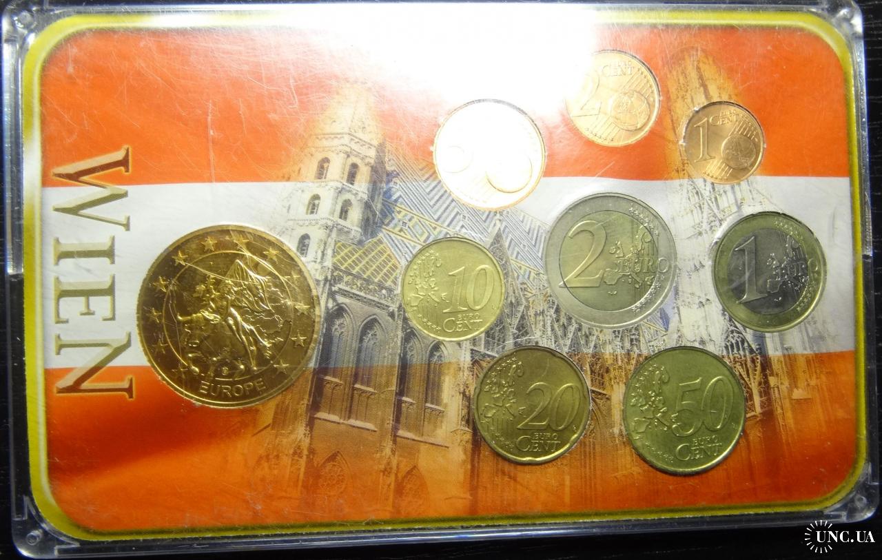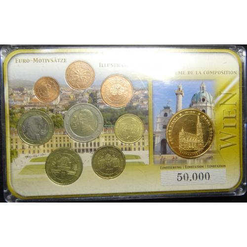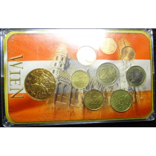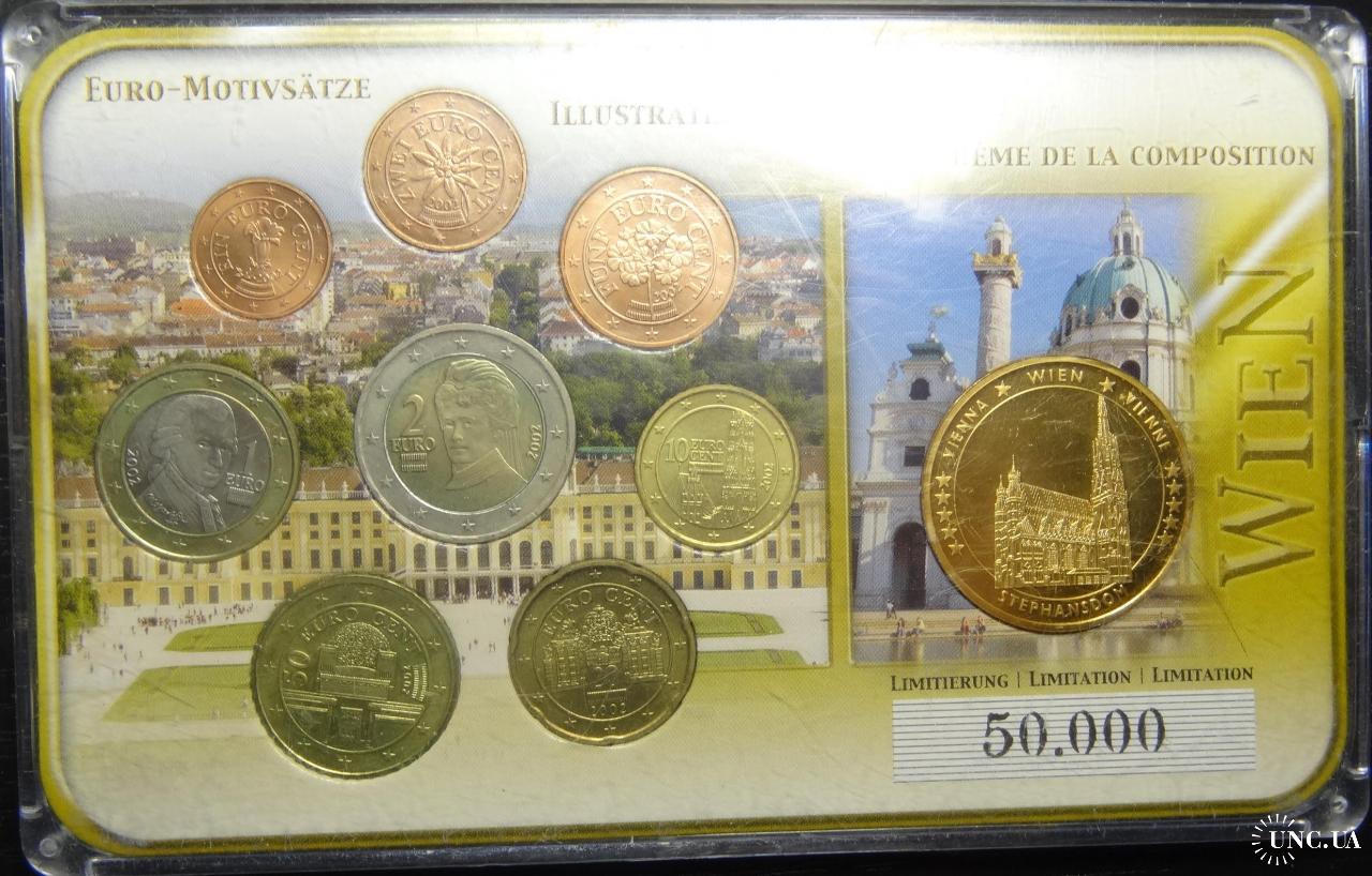 Complete euroset of Austria 2002 UNC + gold plated medal / Повний комплект євромонет Австрії 2002 UNC + медаль з позолотою