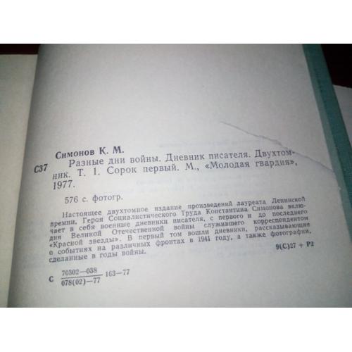 Константин Симонов РАЗНЫЕ ДНИ ВОЙНЫ (Комплект - 2 тома).