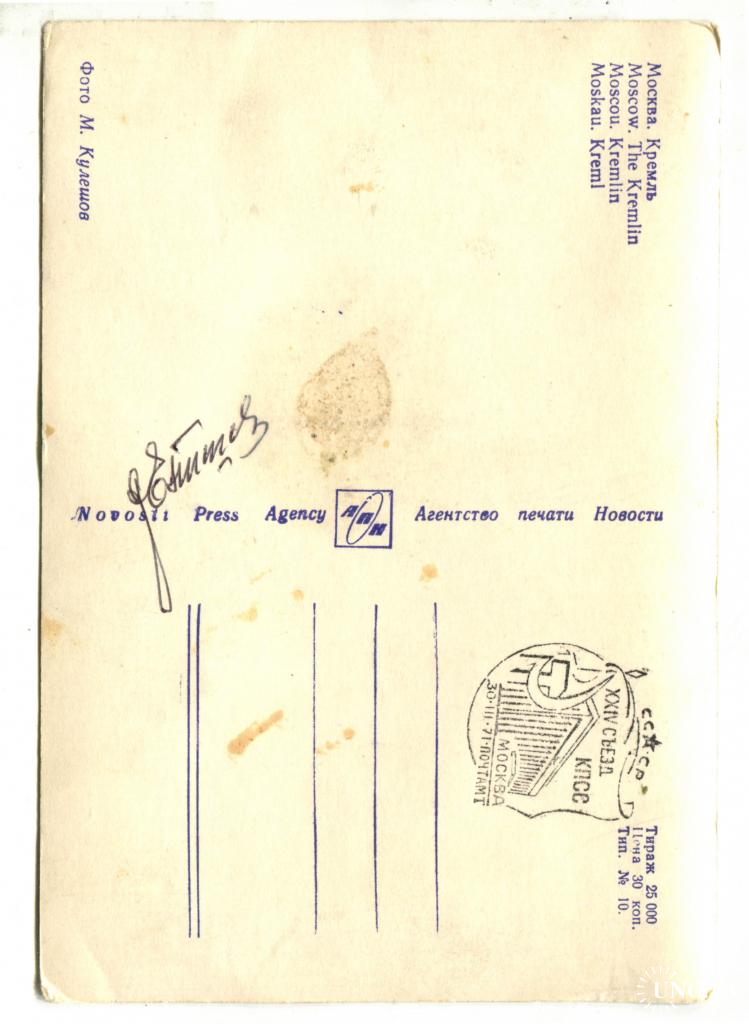 1961-1980Космос. Автограф второго космонавта Г. Титова. 1971 г.