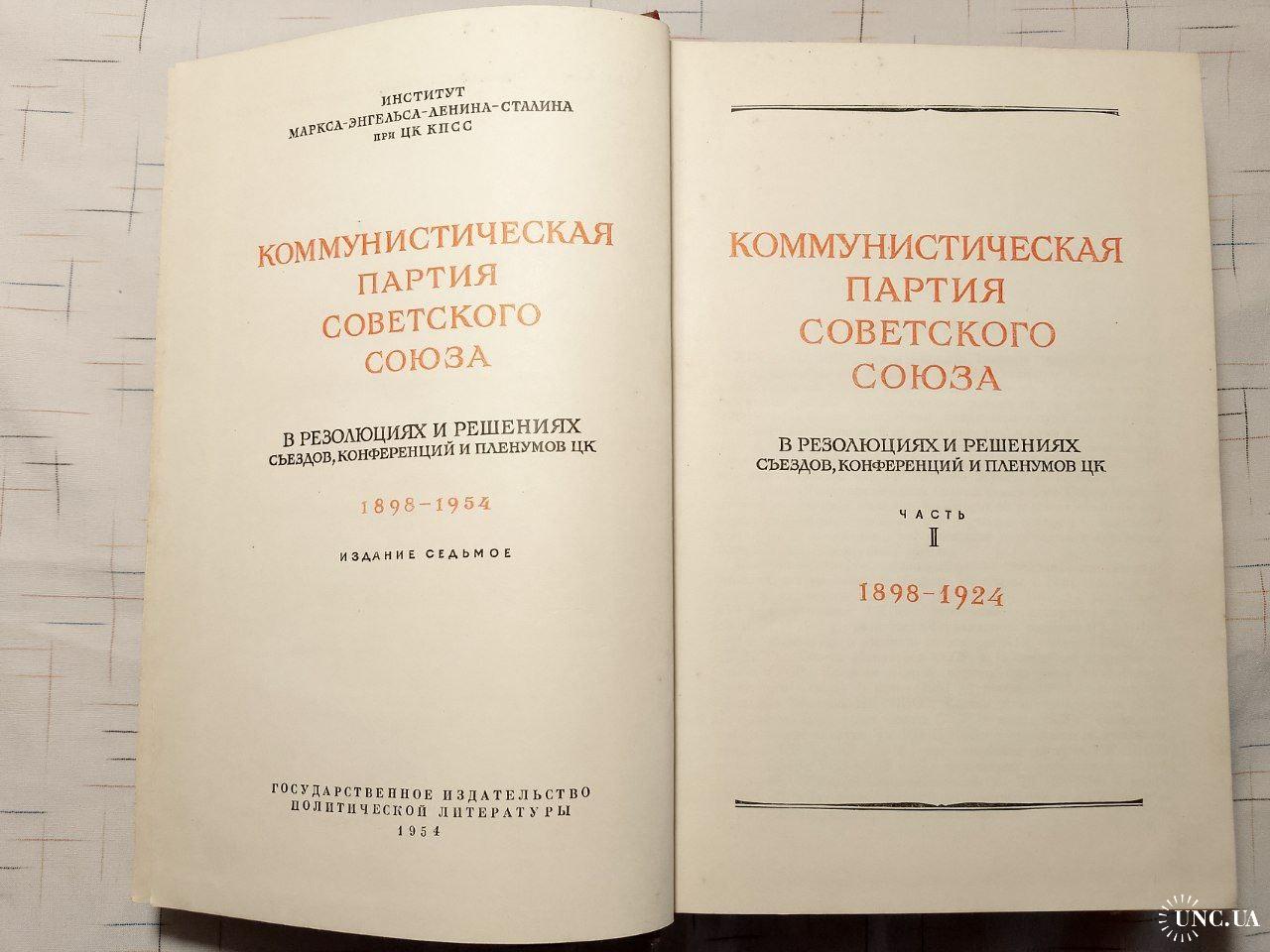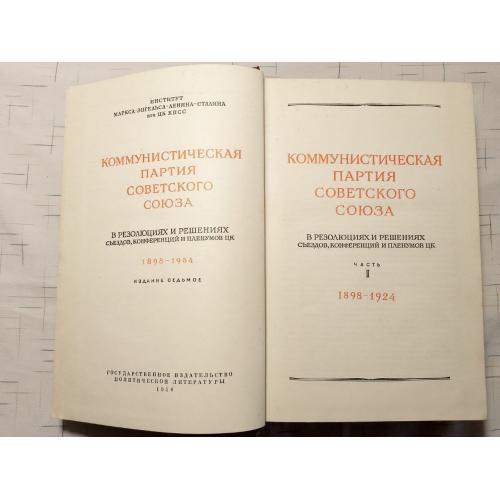 КПСС в резолюциях и решениях съездов, конференций и пленумов ЦК. Часть 1. 1898-1924. Госиздат политлитературы. 1954 год. Очень хорошее состояние!