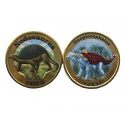 2 красиві сувенірні монети з динозаврами (о. Адонара, Індонезія) 2025 р.