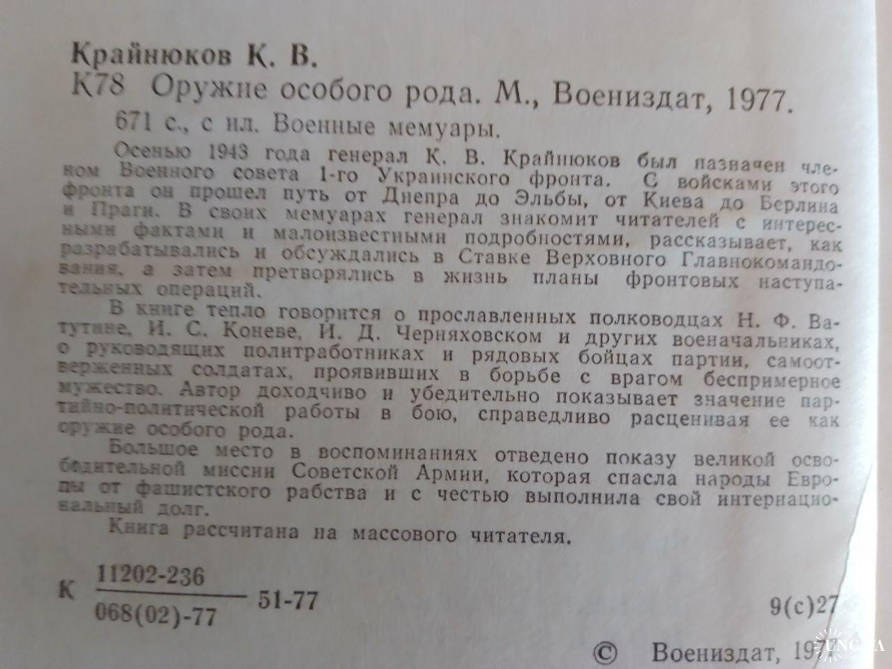 Крайнюков. Оружие особого рода. Военные мемуары. Воениздат МО СССР. 1977