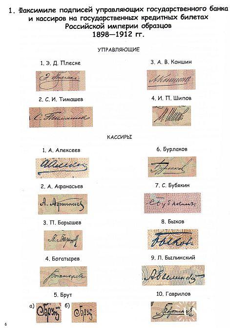 Государственные Кредитные Билеты Российской Империи 1898-1912. Управляющие и кассиры