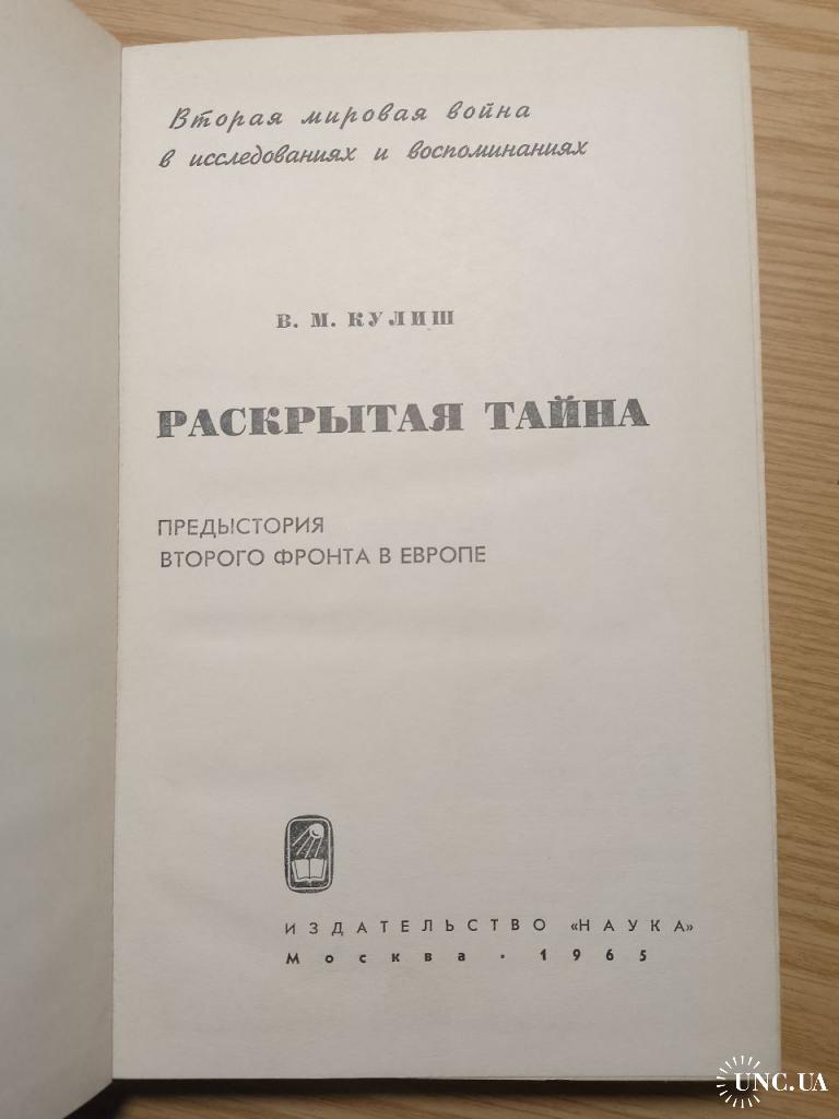 Кулиш. Раскрытая тайна. Предыстория второго фронта в Европе. Издательство: М. Наука. 1965 год