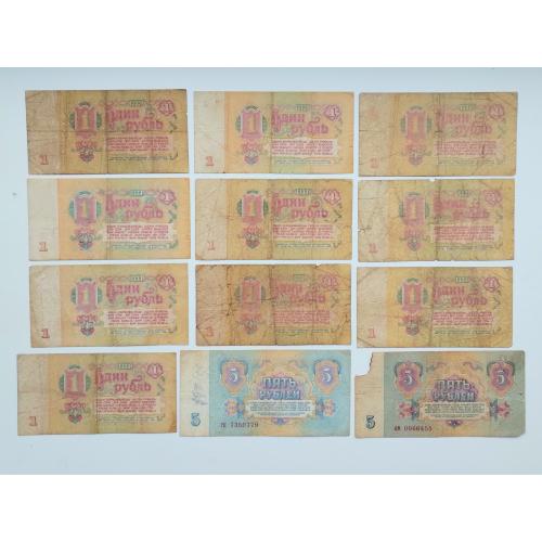availableРублі та 5 рублів 1961 року, стан банкнот по світлинах.