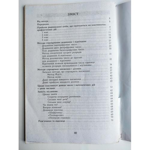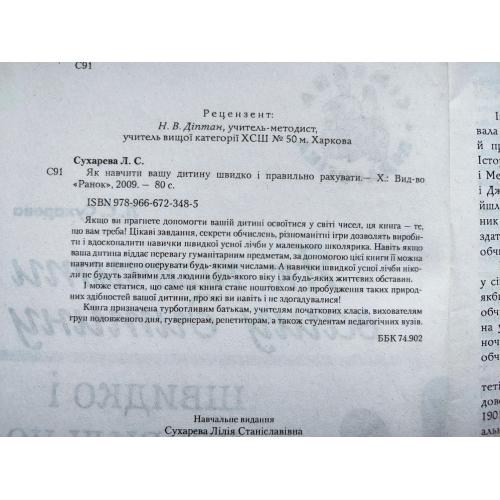 Якщо ви прагнете допомогти вашій дитині освоїтися у світі чисел, ця книга - ти, що вам треба! Цікаві завдання, секрети обчислень, різноманітні ігри дозволять виробити і вдосконалити навички швидкої усної лічби у маленького школярика. Навіть якщо ваша дитина віддає перевагу гуманітарним предметам, за допомогою цієї книги її можна навчити впевнено оперувати будь-якими числами. А навички швидкої усної лічби ніколи не будуть зайвими для людини будь-якого віку і за будь-яких життєвих обставин. І може статися, що саме ця книга стане поштовхом до пробудження таких природних здібностей вашої дитини, про які ви навіть і не здогадувалися! Книга призначена турботливим батькам, учителям початкових класів, вихователям груп подовженого дня, гувернерам, репетиторам, а також студентам педагогічних вузів.