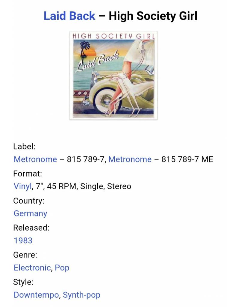 1981-2000Вінілова платівка. Шостий, в дискографії, студійний міні сингл (EP 7), Данської сінті поп, постпанк групи Laid Back, до складу якої входили Джон Гульдберг та Тім Шталь (High Society Girl) 1983. Випуск фірми (Metronome) Germany, 1983-ій рік. Оригінальне, першопресове Німецьке видання. Стан платівки ЕХ+. Стан конверту ЕХ+. Відправка по Україні службами доставки: Нова Пошта, Укр Пошта, Делівері. Також відправляємо посилки за кордон по цілому світу.