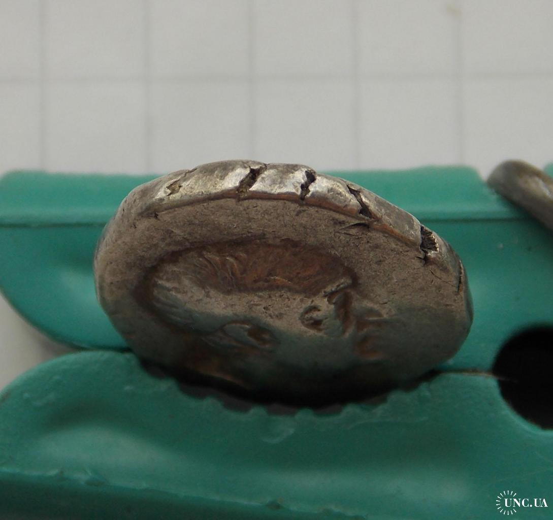 Аверс: Голова в діадемі праворуч;