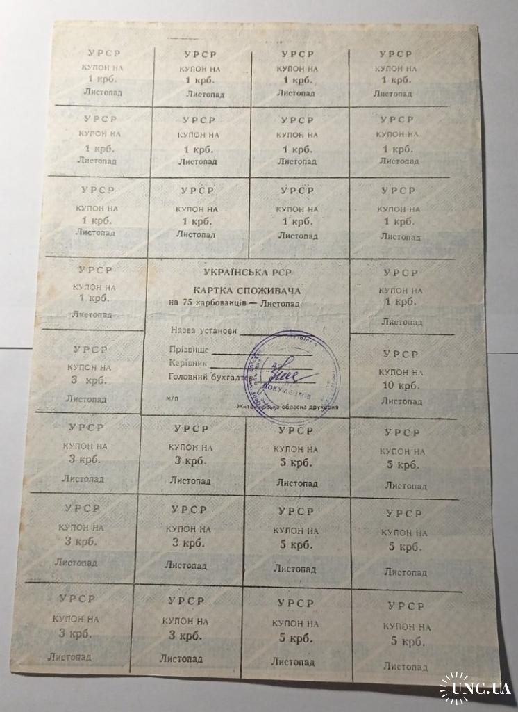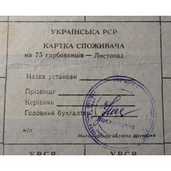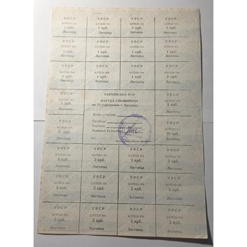 Лист купонів. Картка споживача. Карточка потребителя. Лист купонов. 75.