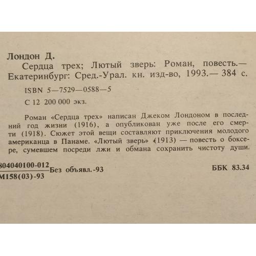 Лондон. Сердца трех. Лютый зверь. Издательство: Екатеринбург. Средне-Уральское книжное издательство. 1993 год. Книга в отличном состоянии. В некоторых местах потерлось тиснение на обложке.