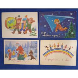 1961-1980Открытки художников Зарубина,Русаков с Новым годом!, 1мая,чистые