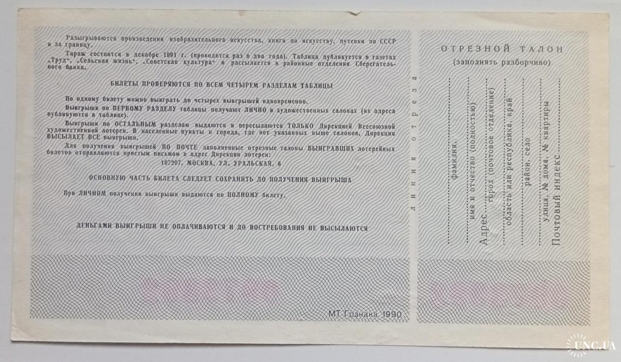 Лотерейный билет №14 1991 Союз художников