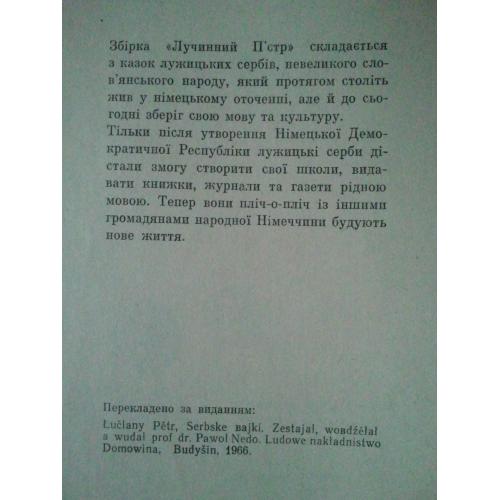 Переклад з сербо-лужицької Дмитро Меденцій. Малюнки Віктора Кузьменко. Видавництво "Веселка". Київ 1973 р.