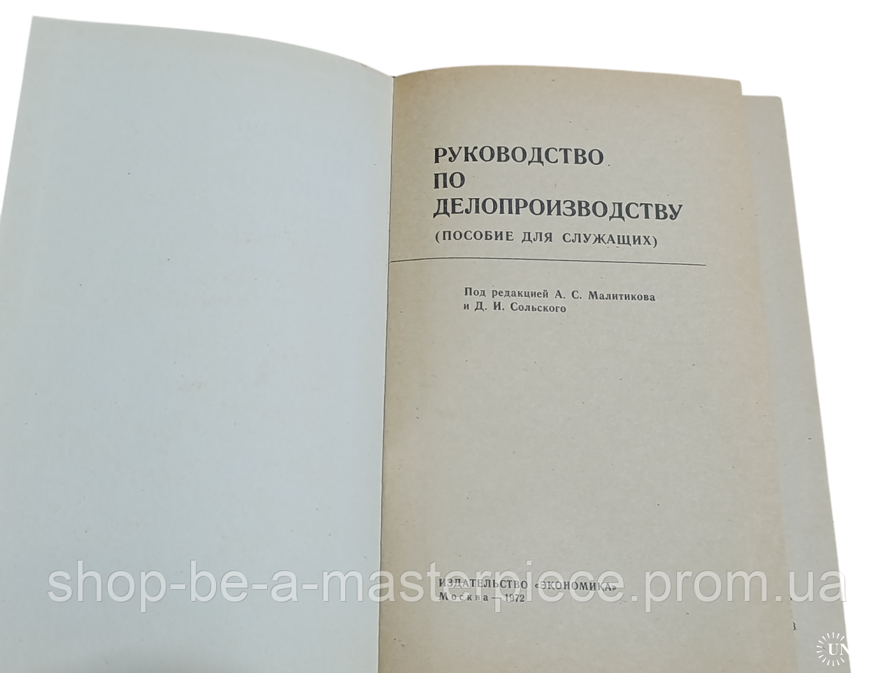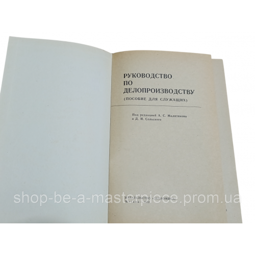 Малитиков, А.С.; Сольский, Д.И. Руководство по делопроизводству 1972 (пособие для служащих) Издательство: М.: Экономика Переплет: твердый; 296 страниц; 1972 г. Формат: стандартный Язык: русский состояние удовлетворительное изменен частично цвет обложки. потёртости краев обложки. потрескалась бумага в районе сшива книги на последнем развороте Научно-исследовательские институты страны на основе специальных постановлений Правительства за последние годы провели большую работу по решению проблем создания единых общесоюзных правил организации делопроизводства в учреждениях и на предприятиях страны. В процессе этой работы подготовлены типовые рекомендации по составлению и оформлению служебных документов, их прохождению, учету и контролю за исполнением, по экономике, организации и механизации делопроизводственного персонала. Предлагаемое Руководство по делопроизводству подготовлено на основе обобщения указанных проектных материалов и имеет целью их популяризацию, разъяснение и практическое применение. В книге рассматриваются все основные вопросы, связанные с организацией, методикой и технологией документационного обслуживания управленческой деятельности. Рекомендуемы формы и способы выполнения операций со служебными документами выработаны с учетом реальных потребностей и возможностей рационализации делопроизводства в учреждениях. Книга рассчитана на служащих различных организаций и предприятий, а также может быть использована в качестве учебного пособия на курсах повышения квалификации административно-управленческого персонала и студентами вузовSeller's answers to your questions