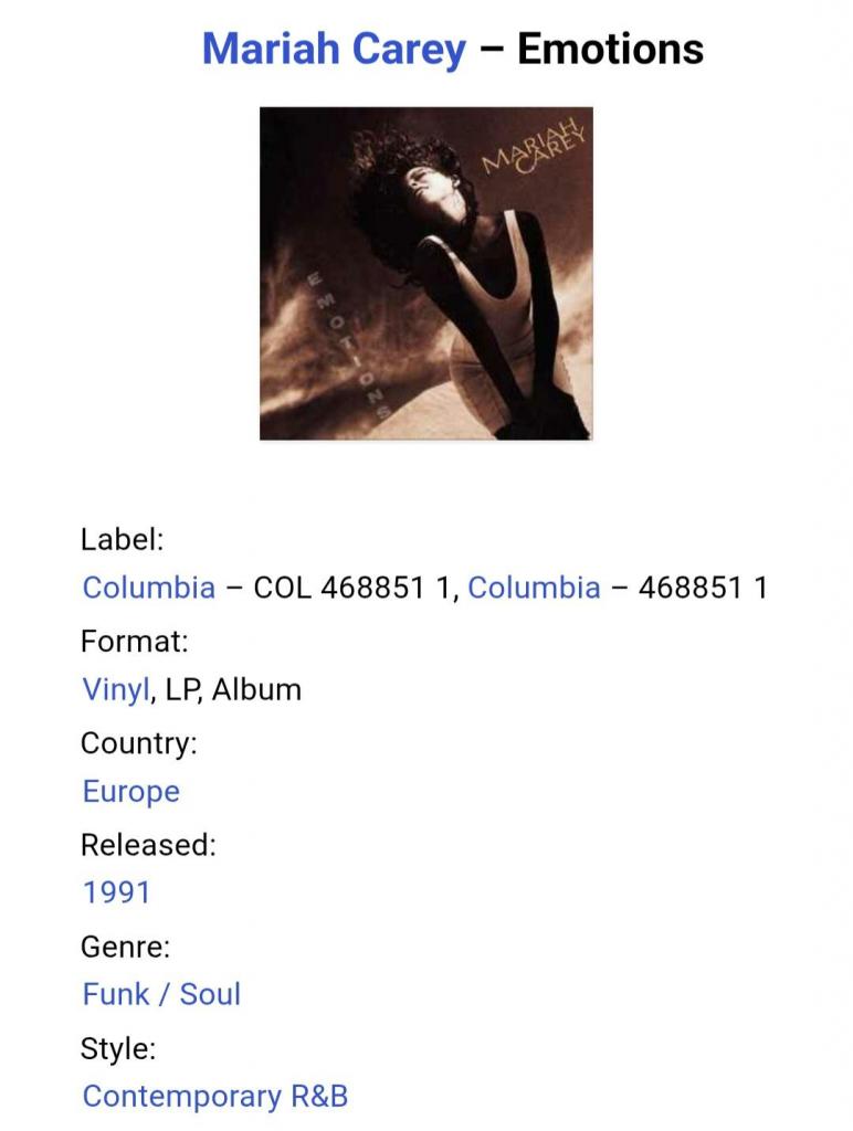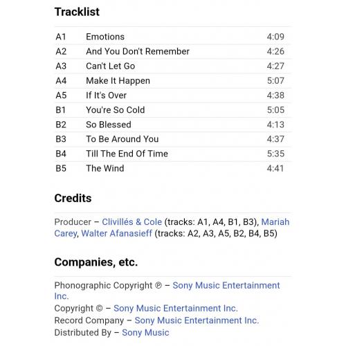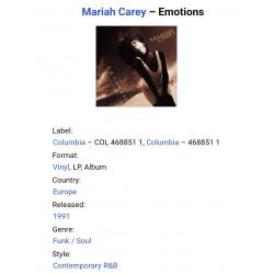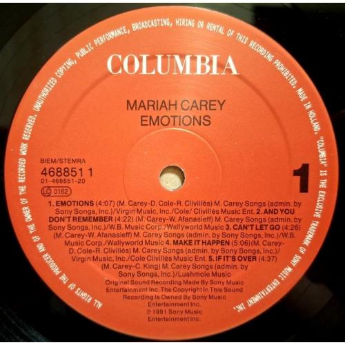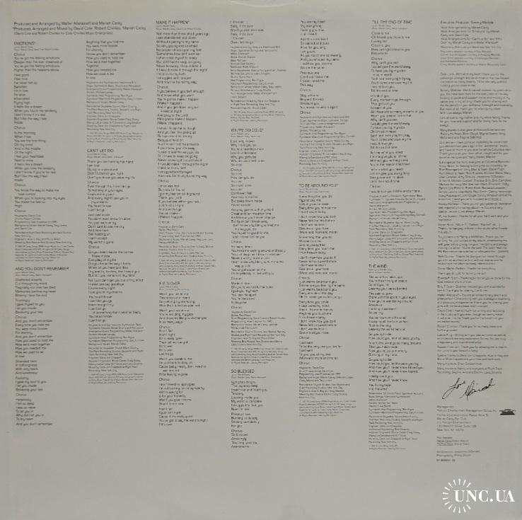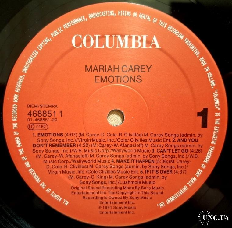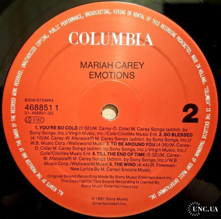 1981-2000Вінілова платівка. Другий, в дискографії, студійний альбом Американської поп, ритм енд блюз виконавиці Африканського походження Мерайї Анджели Кері (Emotions) 1991. Випуск фірми (Columbia) Holland, 1991-ий рік. Оригінальне, першопресове Голландське видання. Стан платівки ЕХ+. Стан конверту ЕХ+. В комплекті внутрішня вставка (Ois). Відправка по Україні службами доставки: Нова Пошта, Укр Пошта, Делівері. Також відправляємо посилки за кордон по цілому світу.
