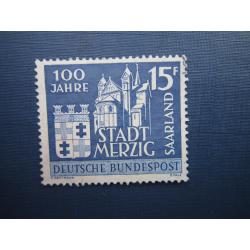 Марка Германия ФРГ Саар 1957 100-летие города Мерциг 15 фр гаш