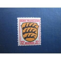 Марка Німеччина Французська зона окупації 1945 стандарт герб 20 франків MNH
