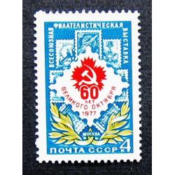 Stamps on stampsМарки СССР 1977 года. Всесоюзная филателистическая выставка к 60 - летию Октября. MNH