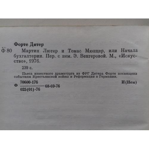 Дитер Форте. Перевод с немецкого Э. Венгеровой. Издательство "Искусство", М. 1976 г. Тираж 13 тыс экз,