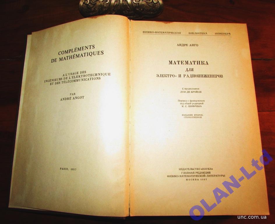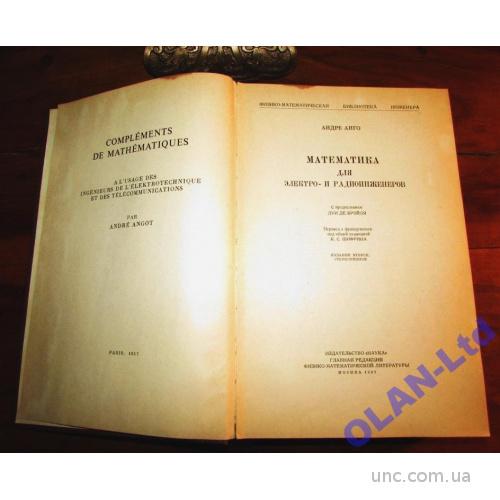 Книга профессора Андре Анго содержит различные сведения из прикладной математики, которые не входят в общий вузовский курс высшей математики, но знание каких будет очень полезно для электро- и радиоинженеров при решении многих практических задач и для достижения конкретных практических целей. Автору удалось в четкой и компактной форме изложить широкий круг вопросов высшей математики ( тензорный анализ, матричный анализ,символическое исчисление Хевисайда, теория собственных значений, теория интегральных уравнений,теория групп и многие др. ), знание которых поможет решать практические задачи электро- и радиоинженерии.