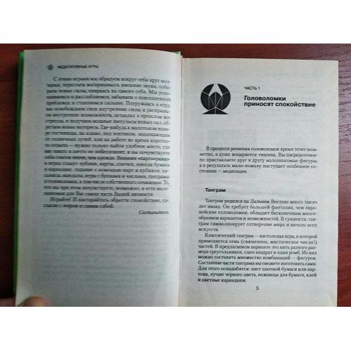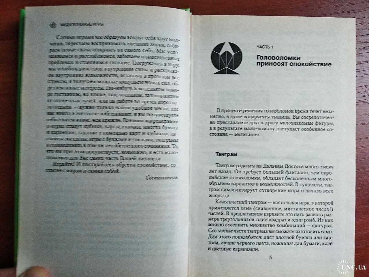 Книга содержит разнообразные медитативные игры: головоломки, пасьянсы, игры с монетами, числами, буквами, игры с цветами и формой, конструкции из карт, спичек, домино, игры-предсказания, гадание на картах. Автор предлагает использовать простые предметы и игровые манипуляции как инструменты для достижения медитативного состояния и самопознания. Каждая игра помогает переключить внимание от стресса к концентрации, от беспокойства к внутреннему покою. Это не просто развлечение, а способ познать себя через игровую практику, найти гармонию и развить интуицию. Книга адресована любителям головоломок и всем, кто интересуется альтернативными методами релаксации и духовных практик.