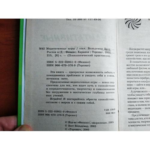 Медитативные игры, Вольдемар Вест • Издательство "Феникс", 2005 год • 224 страницы • Твердый переплет • Тираж 5000 экземпляров.