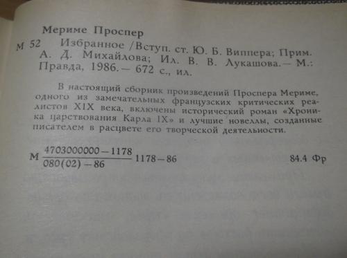 Мериме. Избранное. Новеллы. Хроника царствования Карла IX. Издательство: Правда. 1986 год. Состояние отличное!