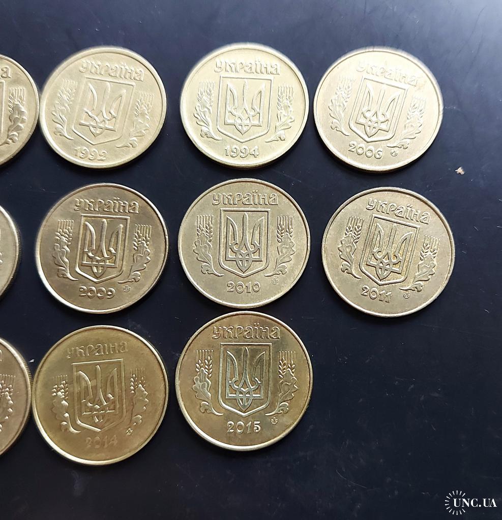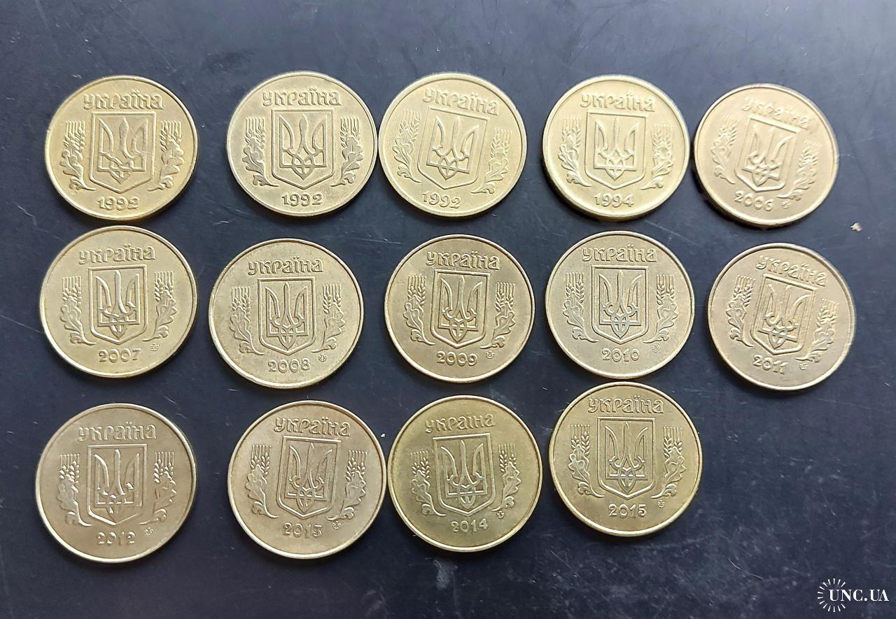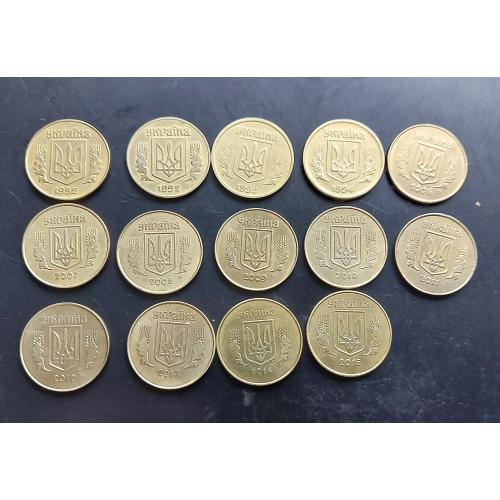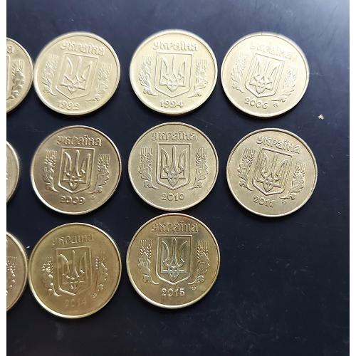 Україна 25 копійок, 14 штук, без повторів!