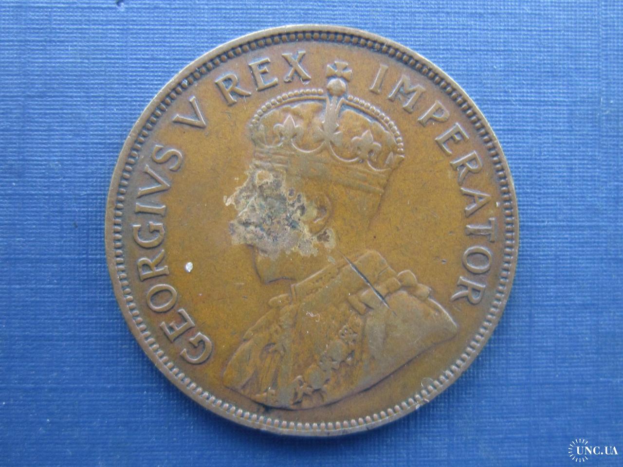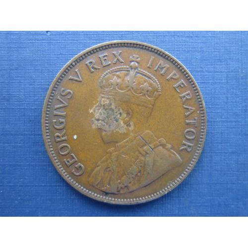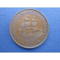 Монета 1 пенни ЮАР Британская 1935 Георг V корабль парусник