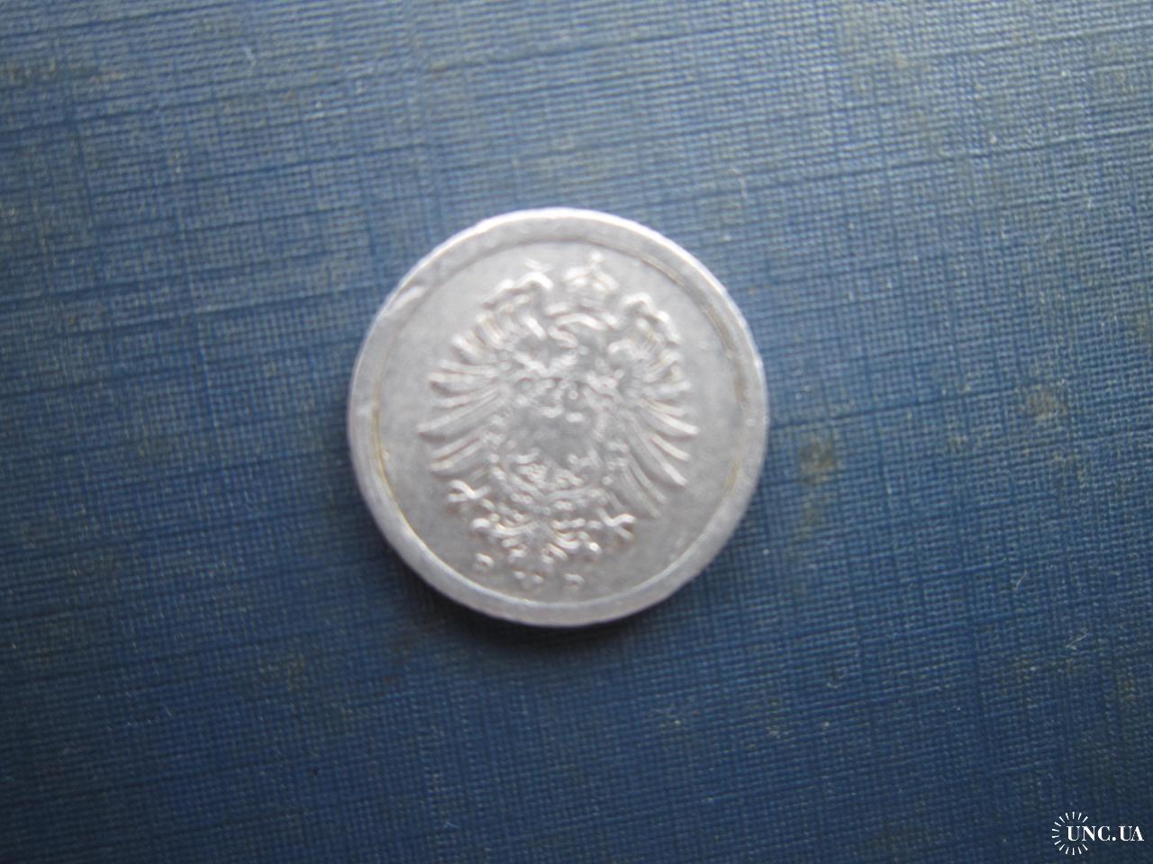Монета 1 пфеніг Німеччина імперія 1917 D перша в Світі алюмінієва монета