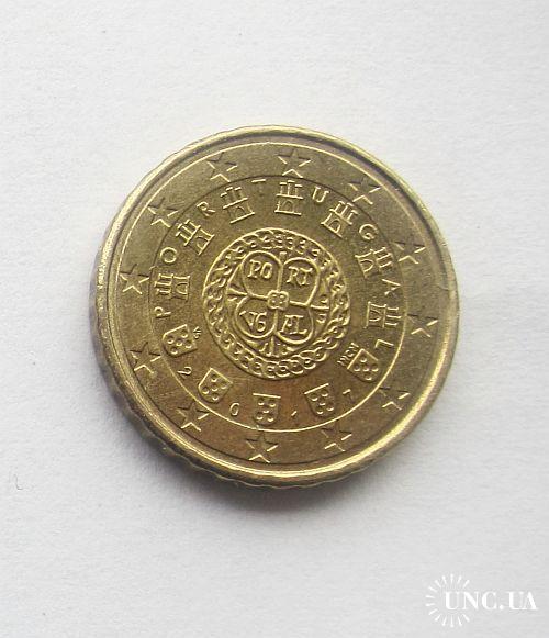Аверс - Вторая королевская печать 1142 года Афонсу Энрикеша, первого короля Португалии, окружена поочередно семью замками страны и пятью гербами, изображенными на португальском флаге, а также буквами слова "PORTUGAL", окруженными двенадцатью звездами Европы.