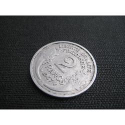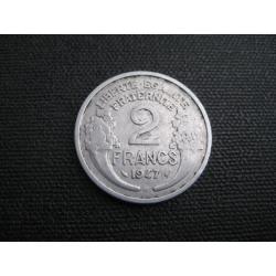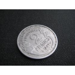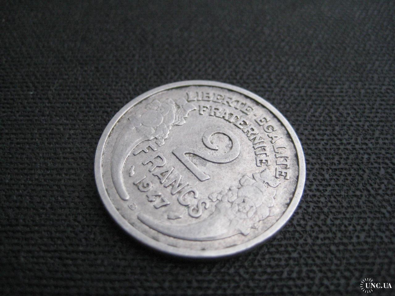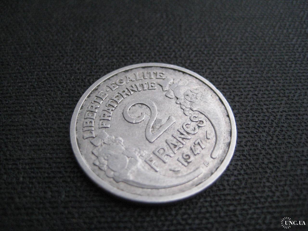 №2832. Оригінальна монета - 2 франка 1947 В Франція (Четверта Республіка).Стан прошу оцінювати по фото. Діаметр - 27мм. Пересилка - Нова пошта, Укрпошта. Для киян можливість зустрічі та перегляду (неділя метро Нивки). В РФ и Белоруссию не отправляю!