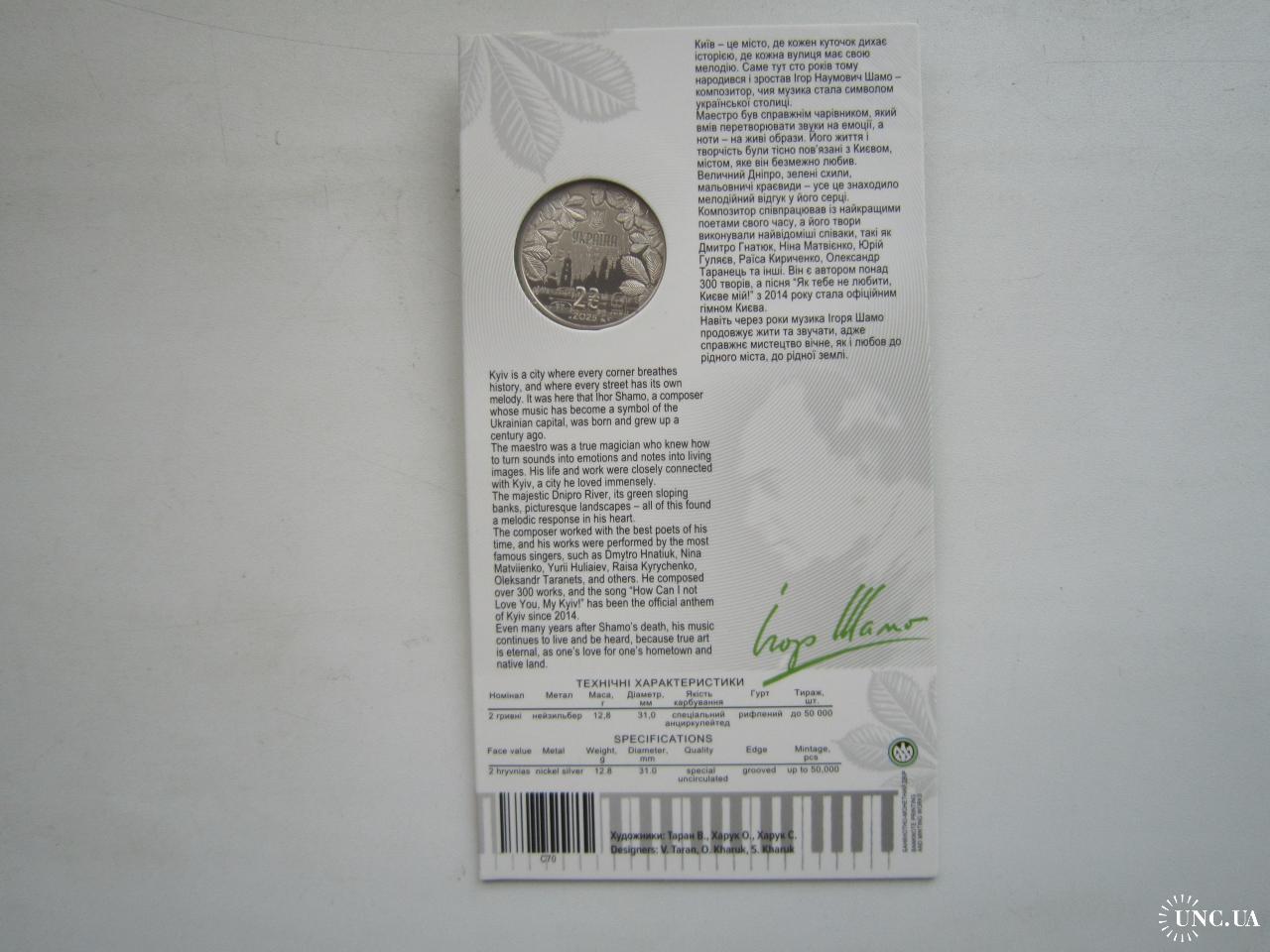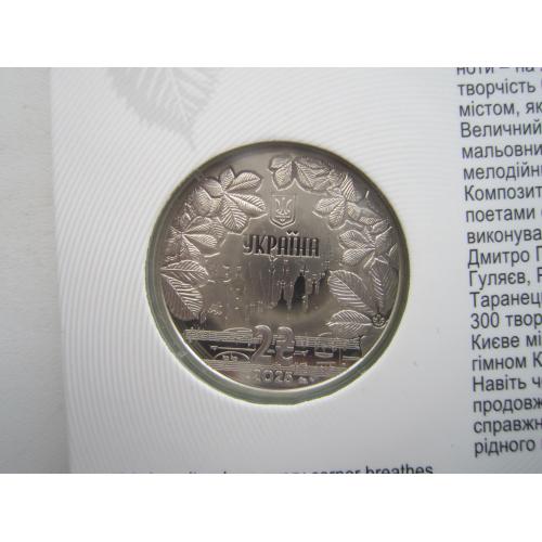 Монета 2 гривні НБУ Україна 2025 в буклеті Ігор Шамо Як тебе не любити, Києве мій!