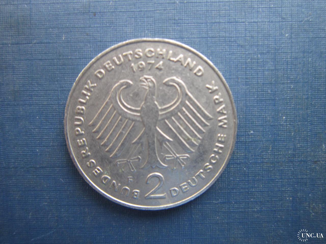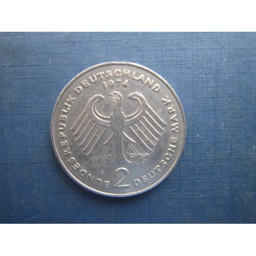 Монета 2 марки Німеччина ФРН 1974 F Теодор Хойс